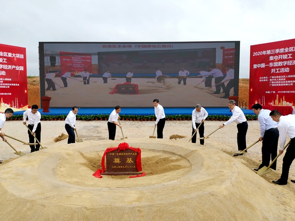 9月28日上午,中国—东盟数字经济产业园开工活动在广西壮族自治区南宁市举行,广西壮族自治区党委常委、常务副主席秦如培出席仪式并宣布项目开工。自治区副主席刘宏武,自治区政府副秘书长黄胜杰,自治区发改委副主任潘巍,南宁市政府副市长朱会东,广投集团党委书记、董事长周炼,自治区大数据发展局副局长吴志伟,数字广西集团执行总裁、广西数字经济生态产业公司董事长靳芳,集团公司党委书记、董事长陈先瑞共同出席活动并为项目奠基培土。