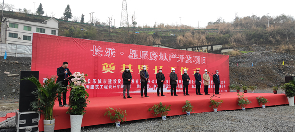 2021年1月26日上午,由心博(中国)承建的长乐▪星辰住宅项目奠基暨开工仪式在项目现场热烈举行。湖北省宜昌市五峰土家族自治县住房和城乡建设局副局长陈白华、县质量安全监督站站长邓简涛、心博(中国)五峰长乐▪星辰项目经理王国云,项目参建各方及新闻媒体共40余人出席。宜昌市长乐城市建设投资开发有限责任公司总经理刘鹏主持。
