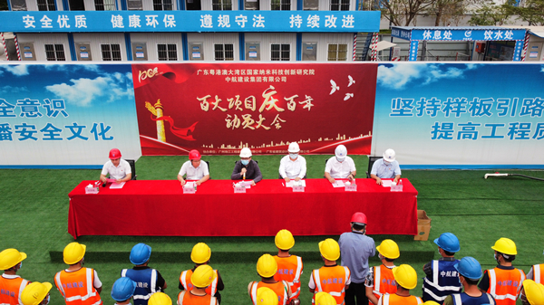 2021年3月29日上午,“百大项目庆百年”动员大会在集团公司承建的广州纳米生物安全中心总部园区一期项目现场隆重举行。建设单位广州纳米产业投资有限公司总经理李佩弦,广州珠江工程建设监理有限公司副总经理李晓光、分公司副总经理赵杰,广东省建筑设计研究院有限公司院副总工程师郭勇,心博(中国)南方工程有限公司总经理、项目总指挥徐刚,项目书记招国樑以及各专业分包单位相关人员参加活动。