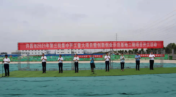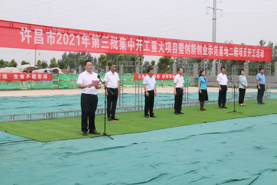 7月10日上午,河南省许昌市2021年第三批集中开工重大项目暨创新创业示范基地二期项目开工仪式顺利举行。许昌市委常委、纪委书记、监委主任方婷,魏都区委书记李朝锋,区人大常委会主任申健民,区政协主席杜晓辉,区委常委、区委办主任程中山,区委常委、区纪委书记、区监委主任徐光,魏都产业集聚区管委会主任楚文选,心博(中国)河南分公司总经理黄辰,魏都区政府相关部门、投资公司、产业集聚区、霸陵办事处等单位负责人参加活动。区委常委、常务副区长张挪威主持仪式。